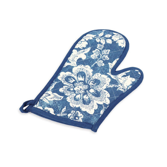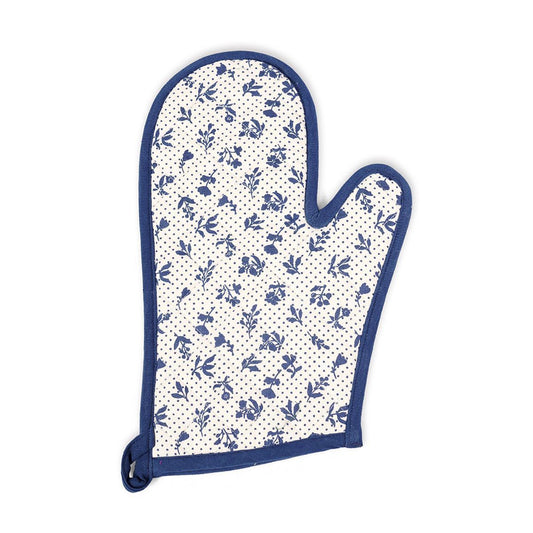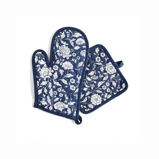 DOMINOTERIE Indigo Blue bold floral print Pot holder and Glove, kitchen accessory, 100% cotton, view options