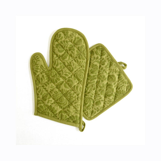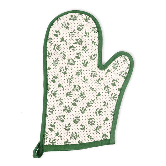 DOMINOTERIE Green floral print Pot holder and Glove, kitchen accessory, 100% cotton, view options
