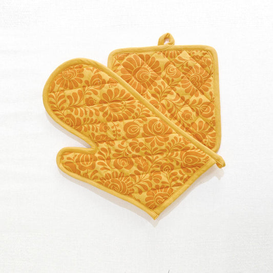 MATYO Yellow floral print Pot holder and Glove, kitchen accessory, 100% cotton, view options