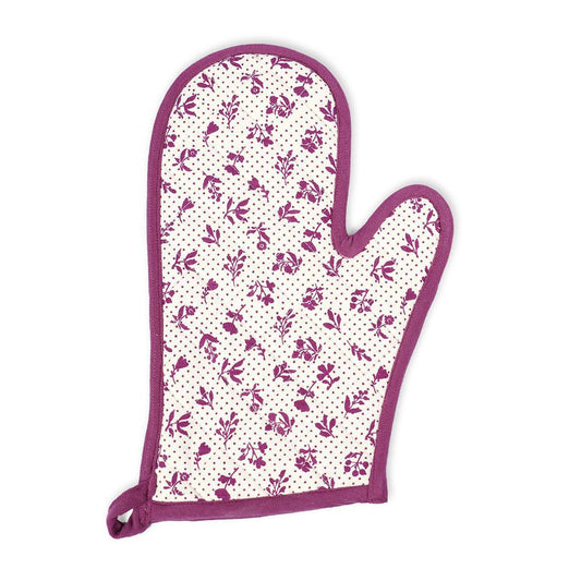 DOMINOTERIE Plum floral print Pot holder and Glove, kitchen accessory, 100% cotton, view options