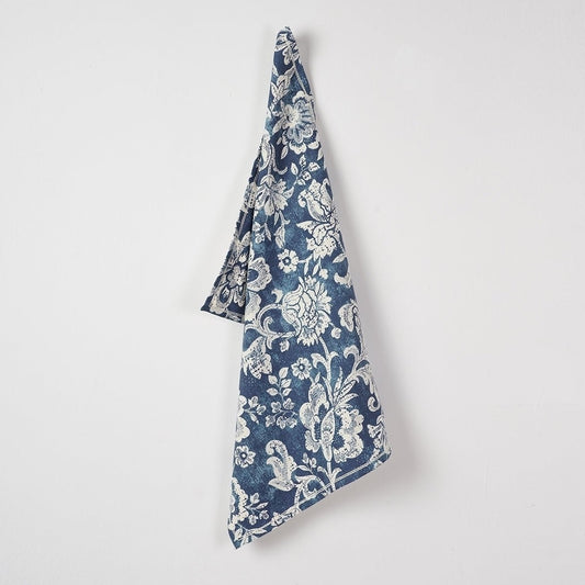 DOMINOTERIE Indigo Blue Printed Kitchen Towel, bold floral pattern, 100% cotton, size 20"X28"