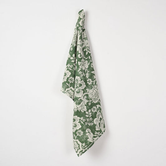 DOMINOTERIE Green Printed Kitchen Towel, bold floral pattern, 100% cotton, size 20"X28"