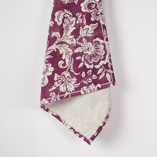 DOMINOTERIE Plum Printed Kitchen Towel, bold floral pattern, 100% cotton, size 20"X28
