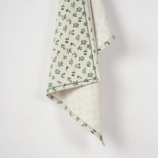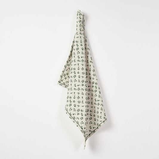 DOMINOTERIE Green Printed Kitchen Towel, small floral pattern, 100% cotton, size 20"X28"