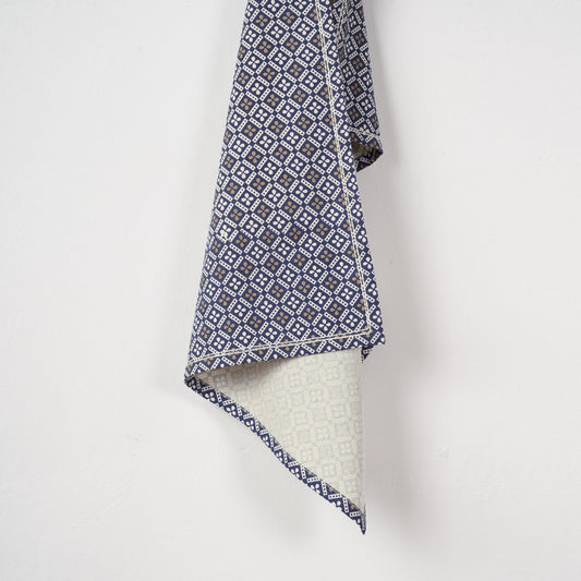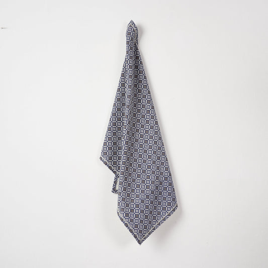 DOMINOTERIE Indigo Blue Printed Kitchen Towel, geometrical pattern, 100% cotton, size 20"X28"