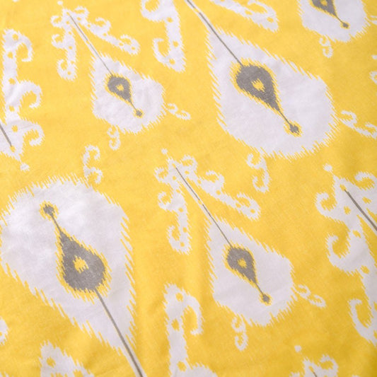 Yellow Ikat print sheer fabric, ikat pattern cotton fabric