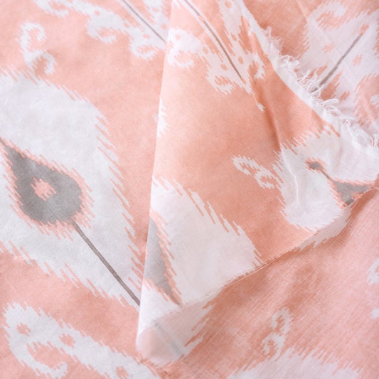 Coral Ikat print sheer fabric, ikat pattern cotton fabric