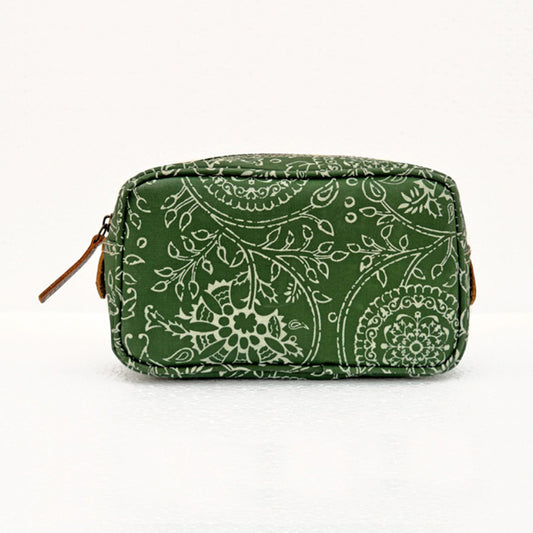 Green printed utility kantha pouch, make up /cosmetic / toiletry bag