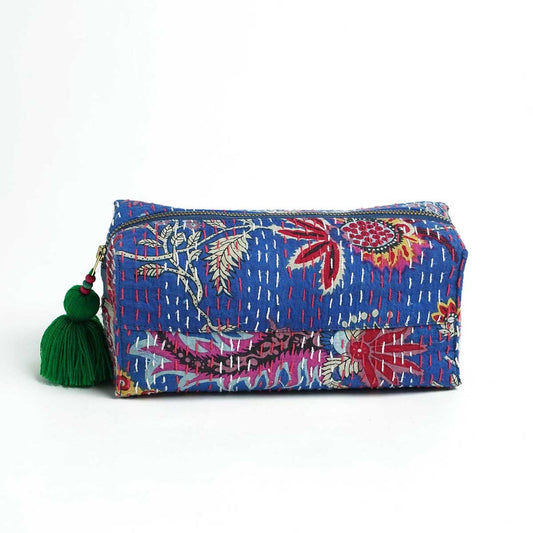Dark Blue toiletry handbag, kantha pouch, make up or cosmetic bag, utility pouch