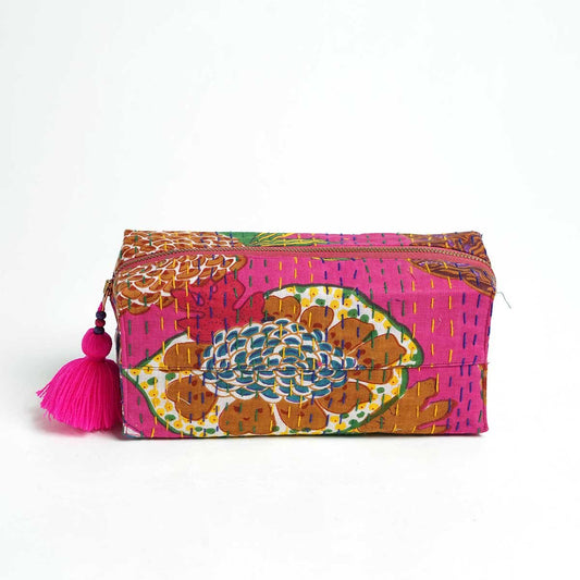 Hot Pink toiletry handbag, kantha pouch, make up or cosmetic bag, utility pouch