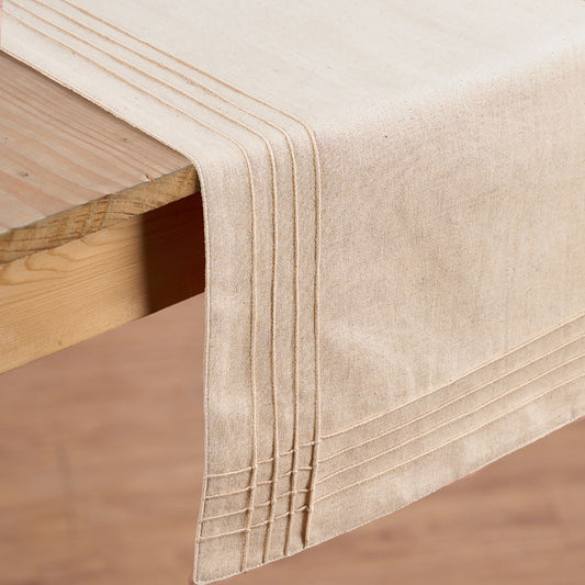 AMOUR - Solid Beige linen cotton table runner with pintuck border, sizes available
