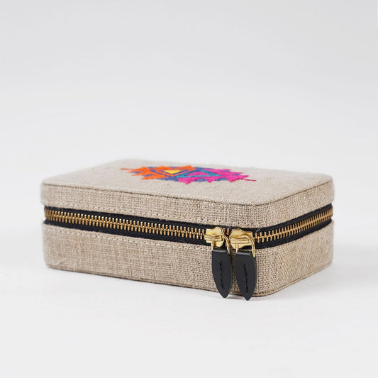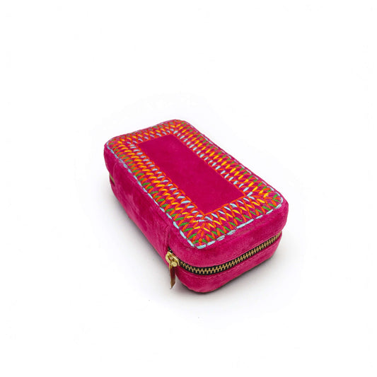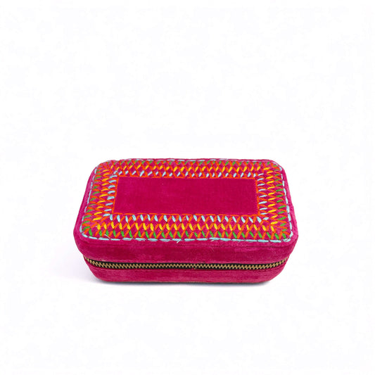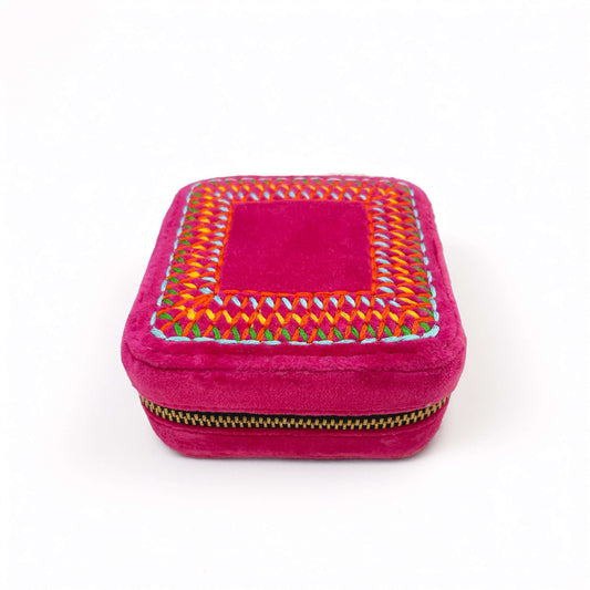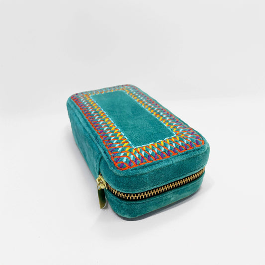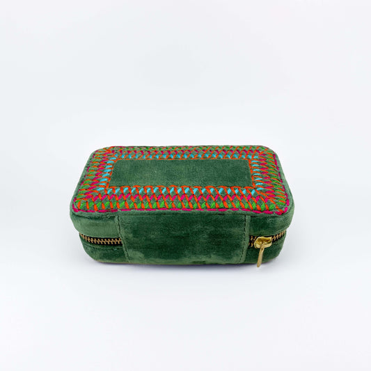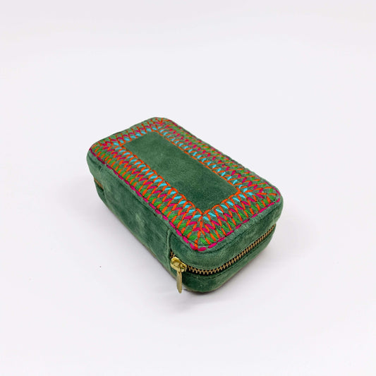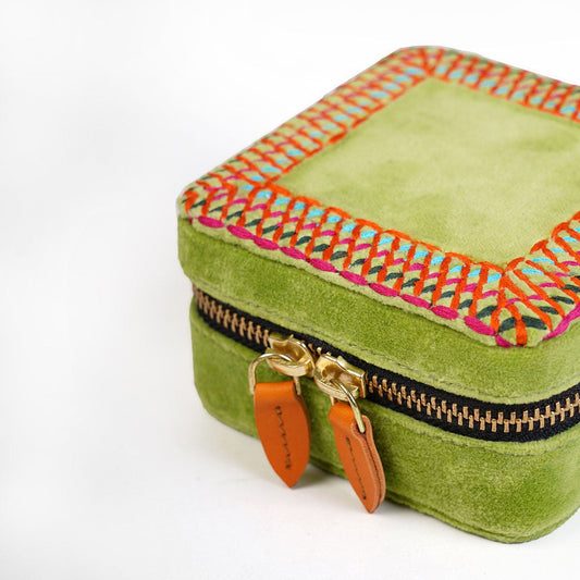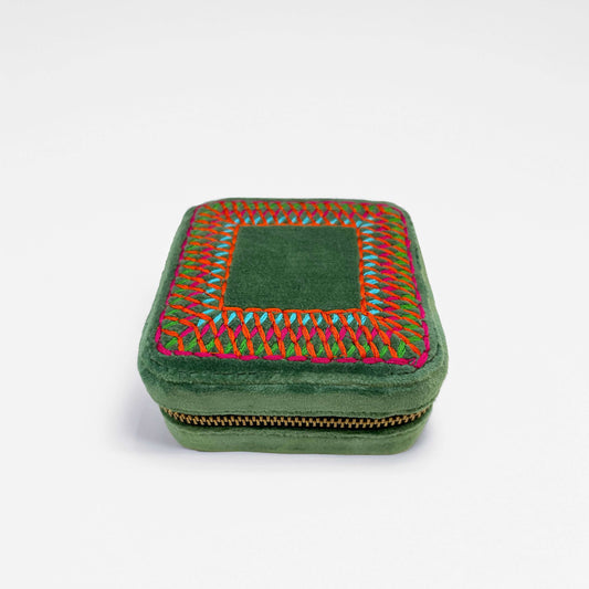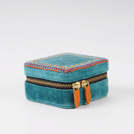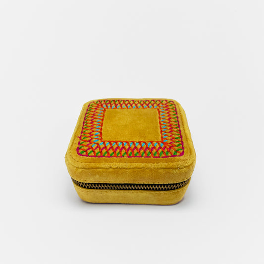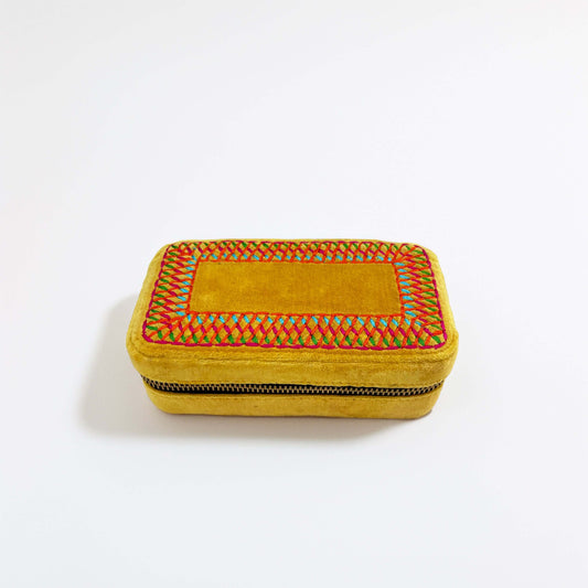 Mustard Velvet Rectangular Embroidered Jewellery box
