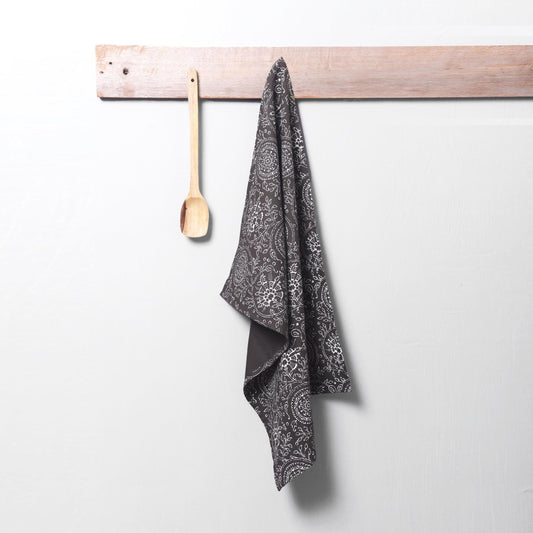KALAMKARI Dark brown Kitchen Towel, floral print, Indian ethnic, printed Tea Towel, 100% cotton, size 20X28 inches