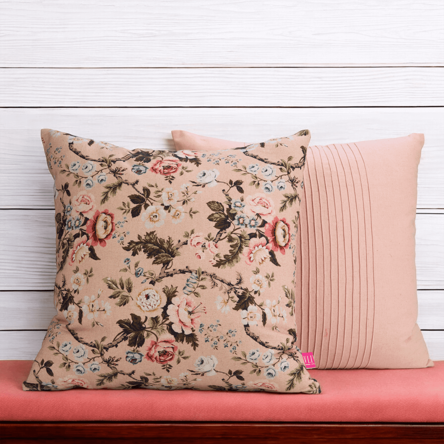 The pillow prints are inspired from vintage french rose print. The pastel colour palette combined with texture of flex cotton fabric gives the pillows vintage romantic look, keeping them light weight at the same time.
