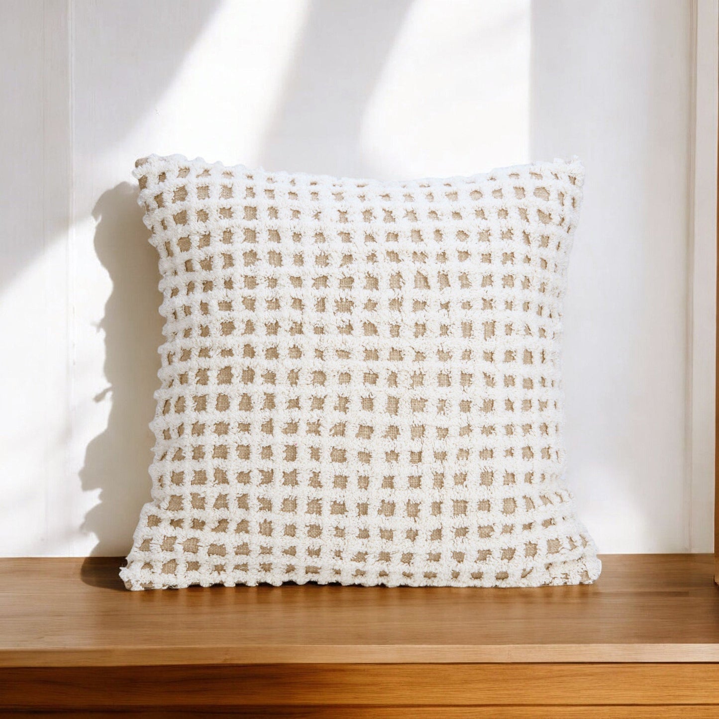 ZULU - Checkered Tufted off white & Beige Throw Pillow Cover, 18X18 inches - Zulu Collection