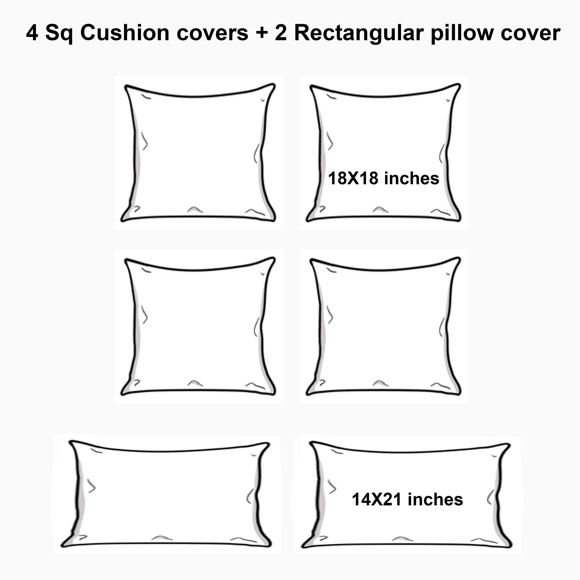 - Set 2: 4 cushions – 18" x 18" + 2 cushions – 14" x 21"