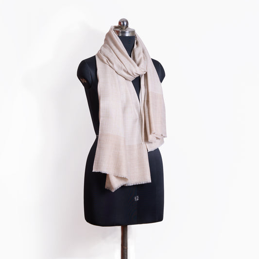 Natural Beige Fine Wool Tweed Scarf for Men | Lightweight Plain Stole