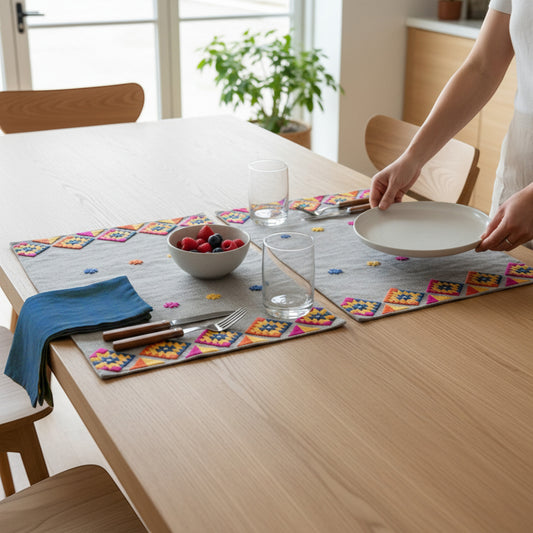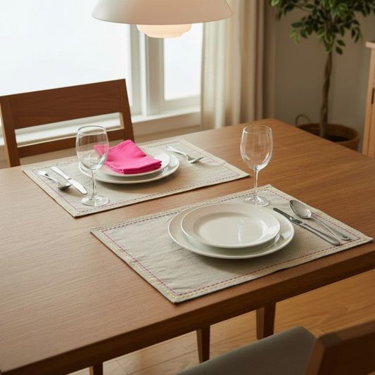 FOLK Pure Linen Table Mats – with Rice Stitch Embroidery