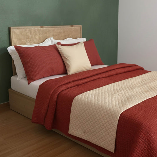 DOMINOTERIE - Plum Colour Printed Cotton Bed Runner Set - King / Queen / Twin Size