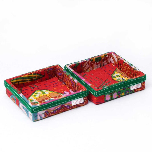 Kantha Decorative Trays in Red print Fabric, Sizes available