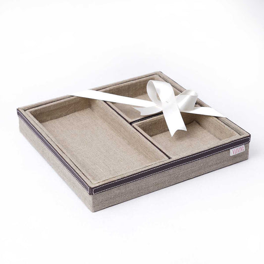 Trays in Natural Linen with Brown Leather trims, Rustic Holiday Decor Christmas, sizes available