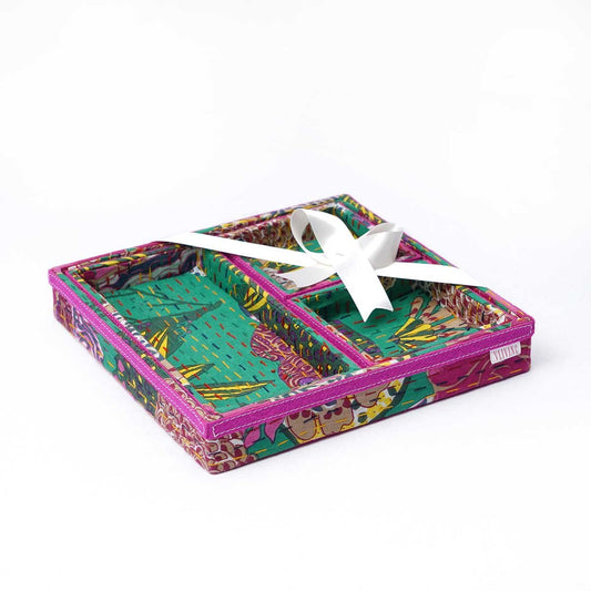 Kantha Decorative Trays in Green print Fabric, Sizes available